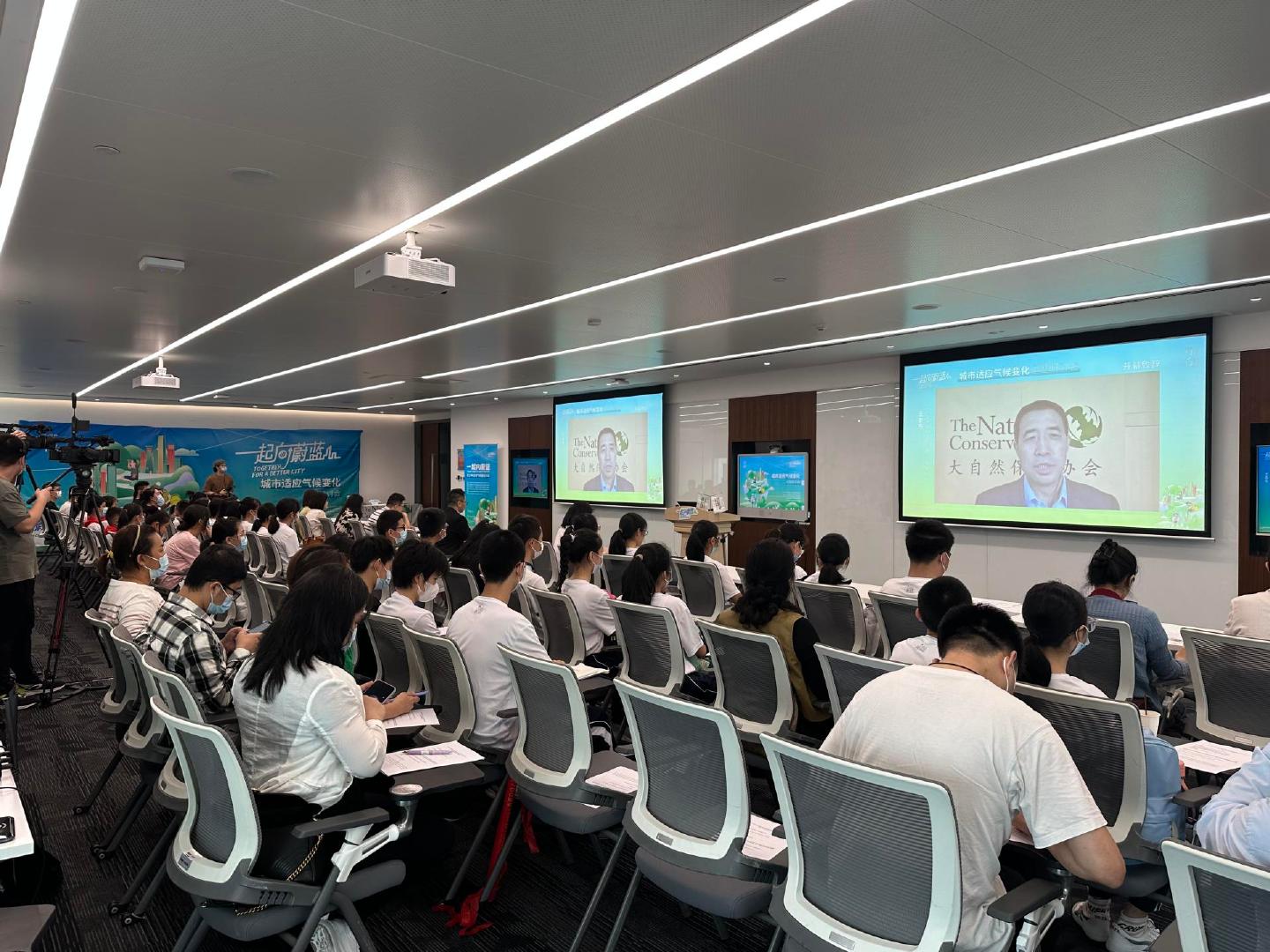 11月12日下午,“一起向蔚蓝”城市适应气候变化主题研讨会在位于深圳南山的腾讯滨海大厦举办。此次研讨会由大自然保护协会(TNC)、桃花源生态保护基金会主办,深圳市小鸭嘎嘎公益文化促进中心承办,腾讯可持续社会价值事业部(SSV)和中国绿色碳汇基金会协办。在联合国气候变化大会(COP27)召开之际,此次研讨会邀请来自多个领域的专家学者探讨交流,展示深圳青少年对于韧性城市社区建设的思考和行动,希望推动更多力量共同助力,让城市变得更加绿色、宜居、提高区域防灾减灾的能力。